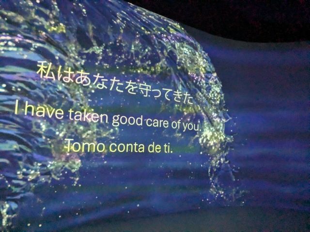ユニークなのは、人間目線ではなく海目線であるということ。「私にゴミをすてるなら、それをあなたに返す」「今日私の資源をすべて奪うなら、明日はあなたに何も与えてあけられない」といったように、海を一人称にしたメッセージが流れていきます。これまた神秘的な世界観です。