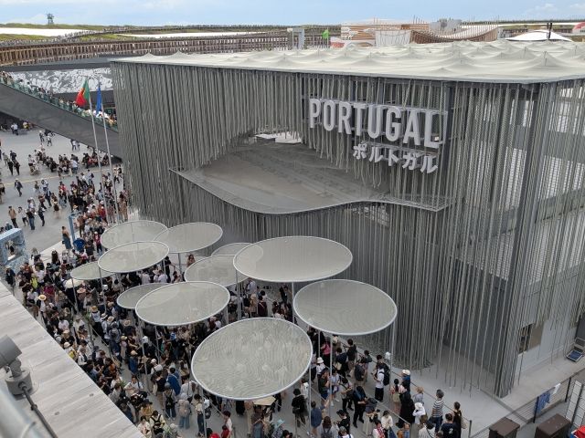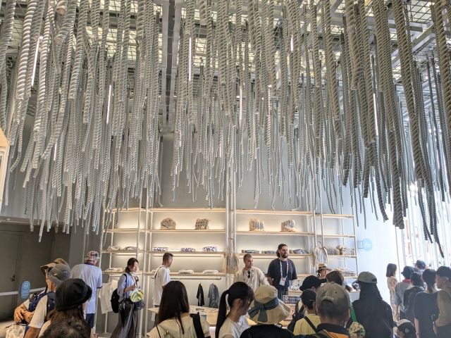 そんなポルトガルのパビリオンは、何かが無数に吊り下がっている不思議なデザイン。こちらはロープやリサイクルされた漁網。海洋国家らしいモチーフですが、現代アートのように洗練されています。