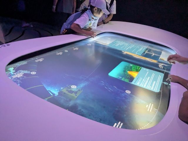 こちらはタッチパネルで見る海洋調査や再生可能エネルギー、ロボットシステム。歴史だけでなく、現代の先端技術も知ることができます。