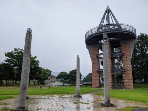 登った先には芝生が広がり、レンガ風の展望塔が建っていました。
