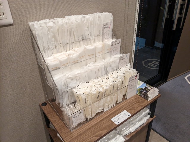 各部屋に歯ブラシやカミソリなどのアメニティはないので、ここで必要なものをもらっていきます。