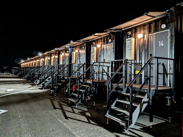 鹿児島県出水市にある「HOTEL R9 The Yard 出水」は、コンテナタイプの宿泊施設。敷地内にずらりと並んだ個室のキャビンに宿泊することができます。