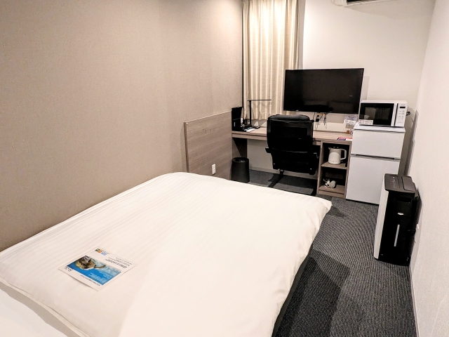 今回のお部屋はこちら。シングルルームはなく、「ダブルルーム or ツインルーム」の二択。今回は一人での利用だったので、ダブルルームです。