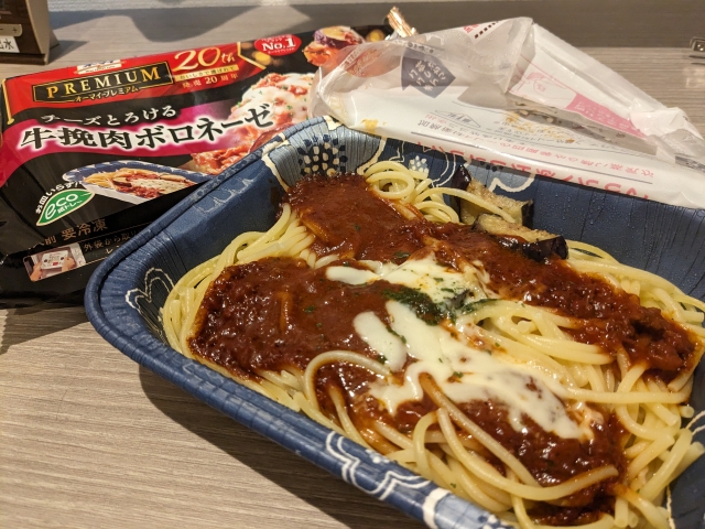 夕飯はいずみ親子ステーキごはんを食べてきたので、翌朝の朝食で使用しました。選んだのは「チーズとろける牛挽肉ボロネーゼ」。お部屋のレンジでほかほかの仕上がりです。思えば、部屋にレンジがあるというのもけっこうレアな気がしますね。