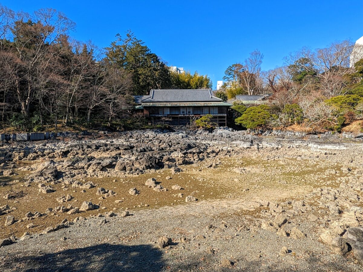 小浜池の奥に建つ京都風の高床式数寄屋造りの建築は楽寿館。明治時代に小松宮彰仁親王の別邸もして建てられたものです。内部見学可能ですが、自由に入館できず1日6回ほどの見学ツアーに参加する必要があります。