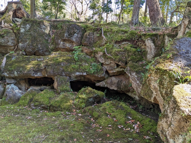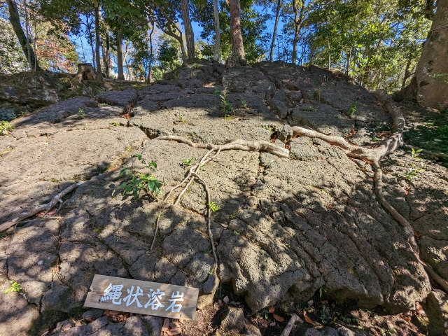 普通の岩に見えますが、こちらは粘り気の少ない溶岩流の末端にできる溶岩塚。溶岩とともに、そこに広がっていく木の根の力強さも感じられます。表面には縄状溶岩があるそうですが、縄に見えるものが見当たらず・・・。