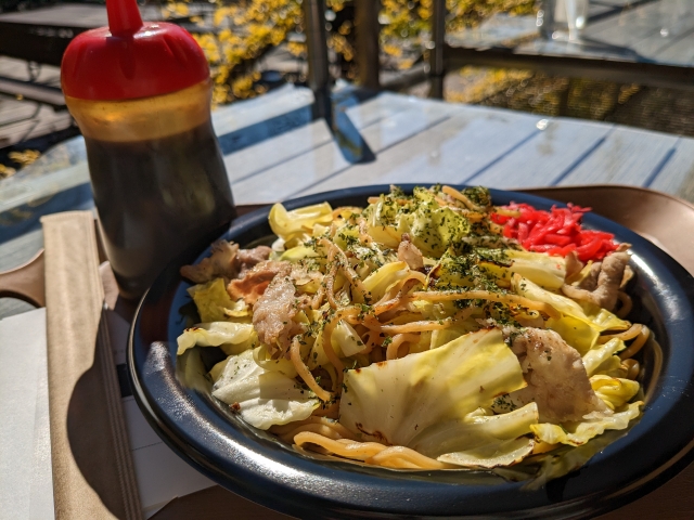 ネーミングにひかれて「三島ゴムそば」を頼んでしまいました。言われてみれば輪ゴムのような不思議な食感の焼きそば。味付けはあっさり塩味で、お好みでソースを後がけするというのもユニーク。