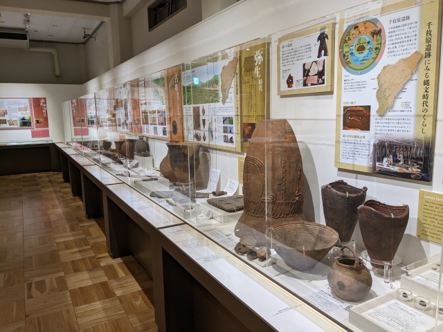 旧石器時代から始まる三島の歴史。遺跡から出土した土器や中世の瓦、戦国時代の陶磁器、江戸時代の書状など様々な歴史資料が展示されています。