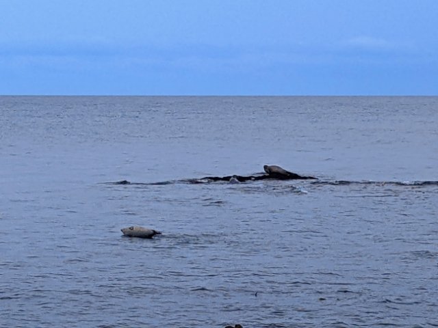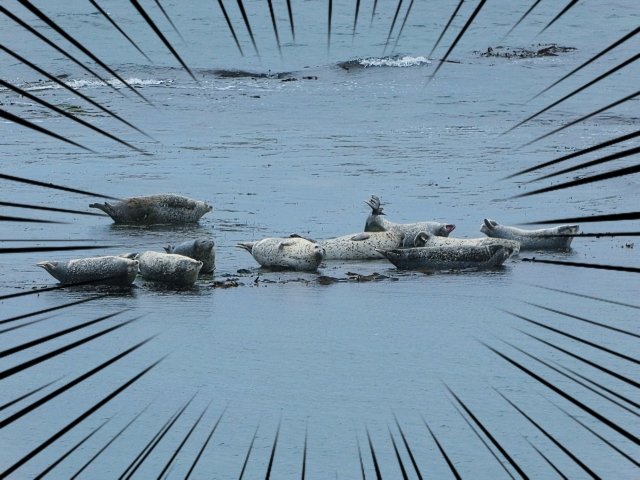 アザラシたちは陸地からは少し離れたところで群れています。そのため、スマホだと少々厳しい距離感。