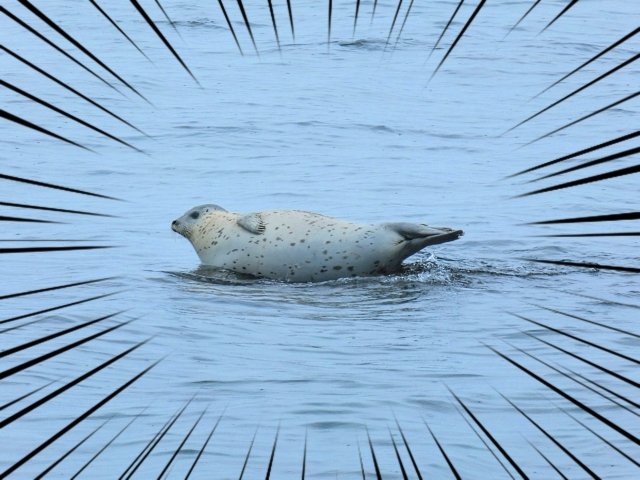 近くの海に浮かんでいるものもアザラシヘッド。ぷかぷかと波間をただよいます。