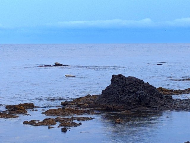 ここは湾になっており波も穏やか。夏場だったら海を歩いてかなり接近することもできそうな予感。アザラシって人が来たら逃げるのでしょうかね?そもそも近寄るとキケンだったりするのでしょうか。