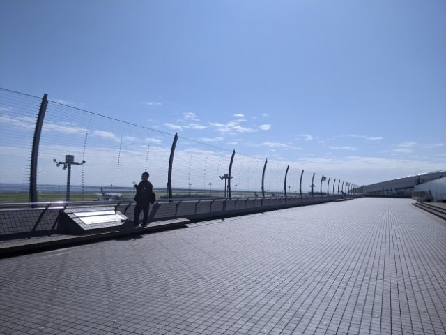 まずは空港恒例の展望デッキへ!この展望デッキの床面にはソーラー式のLEDが埋め込まれており、夜になるとキラキラと輝きます。