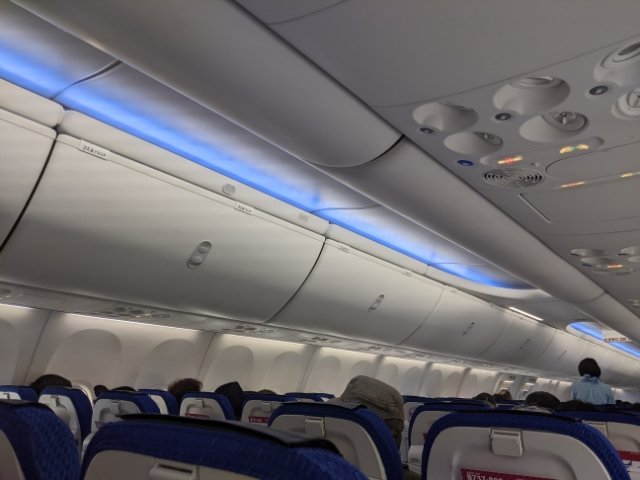 さてさて、フライト30分前になったので保安検査場を華麗にスルーして搭乗口へ。搭乗時刻になってもなかなか乗ることができず、30分近く遅延してしまいました。