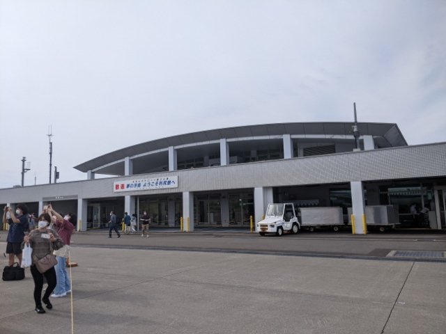 利尻空港はこじんまりしたいかにも離島の空港。ボーディング・ブリッジは無く、徒歩で空港内へと移動するタイプです。