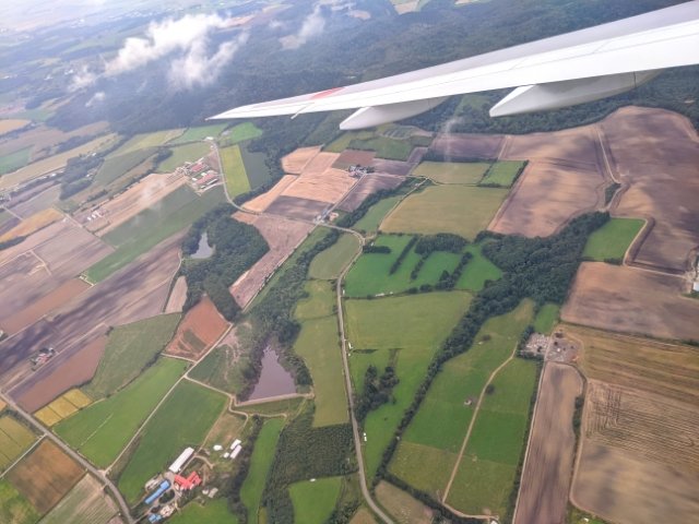 機体が降下をはじめると、窓の外に広がるのは牧草地帯。定刻より10分ほど遅れて新千歳空港へと到着しました。