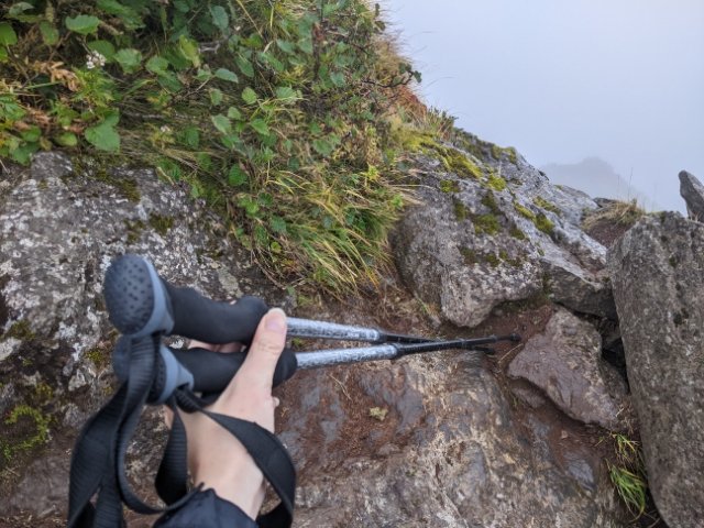 長い登山となるため、あるかないかでは脚への負担が大きく変わります。特に下山はただひたすら岩場を下ることになるので、物凄く便利。使用する際は必ずキャップを付ける必要があるのでご注意を。