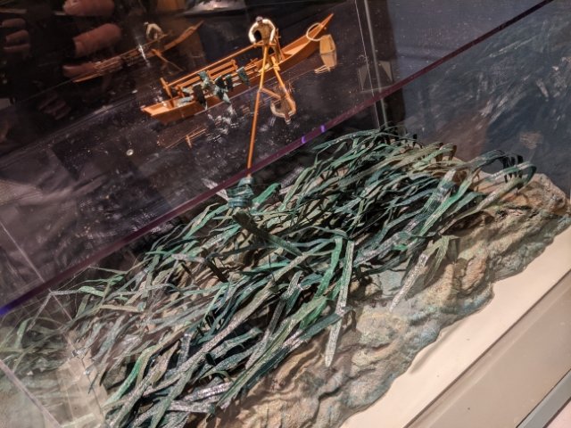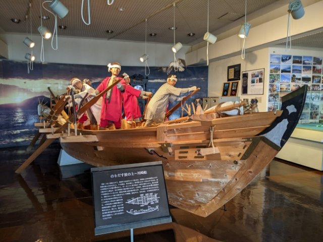 入館者を出迎えるのは、ニシン漁やタラ漁に使用されていた川崎船。漁師の人形たちも乗っかり、迫力あります。