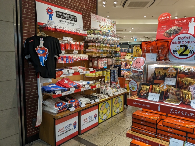 そんなアントレマルシェの一角に設けられているのが、大阪万博2025コーナー。赤と青のカラーリングでかなり目立っています。