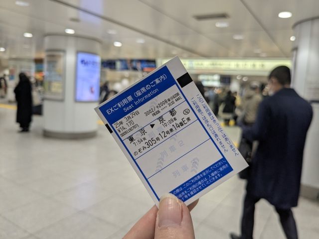 ということで宿が決まったので、これにて旅行はほぼ確定。毎回恒例、EXアプリでささっと新幹線を予約。「②京都までの移動手段」確保完了です。