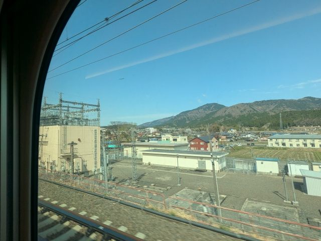 曇り空なので、車窓から見える景色はそれほど鮮やかではありません。それでも高速で過ぎゆく街並みは眺めていて飽きがこないです。