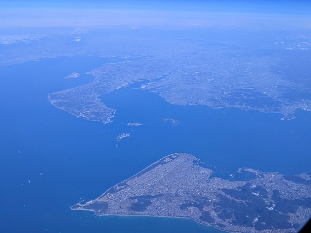 気がつけば愛知県の渥美半島と知多半島が見えます。間に浮かぶ3つの島は、愛知三島こと佐久島・篠島・日間賀島。また遊びに行きたい・・・!
