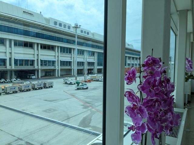 機体を降りると感じるのはむわっとした空気。これぞ沖縄といった感覚にテンションが上がります。機内アナウンスのでは雨とのことでしたが、降っておらずこれまたラッキー。