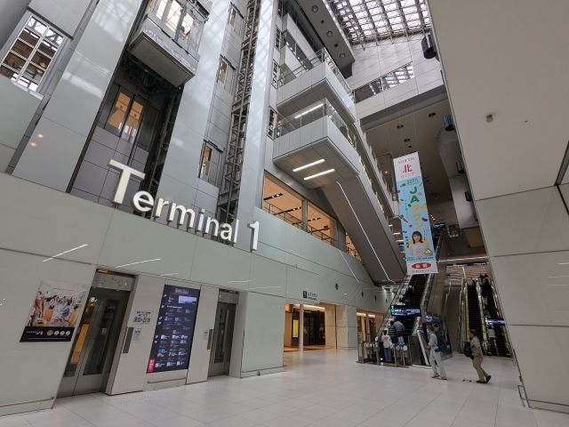 慣れている空港&国内線なので1時間前くらいにつければ問題ないのですが、平日なので都内の通勤ラッシュを避けるため朝早めの電車に乗車。予定より早めの電車に乗れたので、7:05に羽田空港第1ターミナルに到着しました。