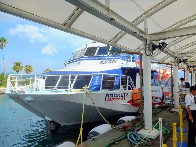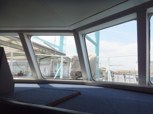 高速船は「トッピー」と「ロケット」の2種類あります。予約していたので、メール画面を受付で提示、このときに座席指定します。
