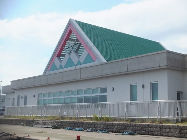 いおワールドから高速船乗り場まで徒歩10分ほど。緑色の三角屋根が目印です。