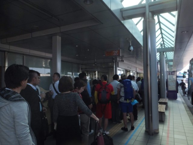 鹿児島市内方面行きのバス乗り場は、人であふれてました。乗りたかった10:00発は満席で乗れず、次の10:10発のバスへ。