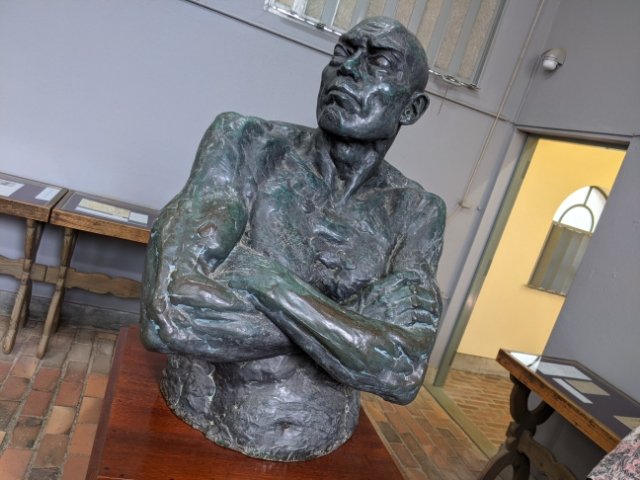 この像は岡田みどりという女性をモデルにして作られましたが、その姿は黒光にとても似ているそう。次男を病によって失ってしまった黒光の悲しみを描いたとも、黒光への愛に苦しむ碌山自身の姿を投影したともいわれています。