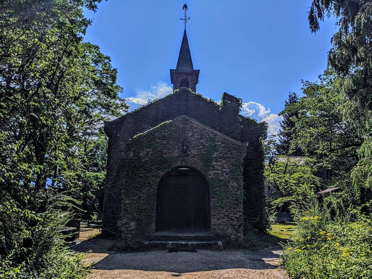 レンガ造りの教会のような建築の碌山館。旅行雑誌などでもおなじみの、碌山美術館を代表する建築物です。木立ちに包まれた姿、そして絡みついたツタはなんともいえない情緒を膨らませます。