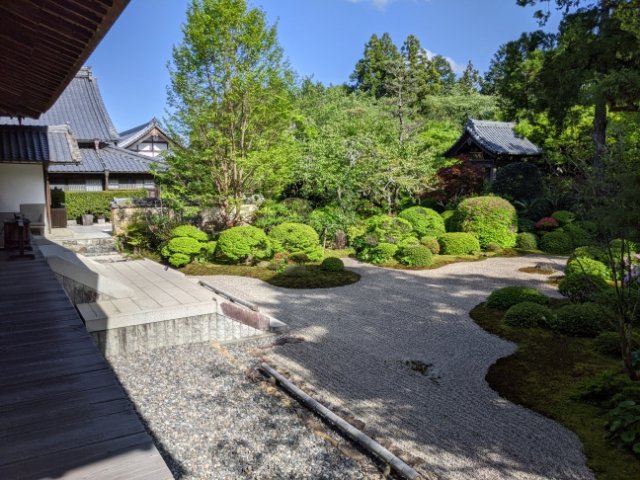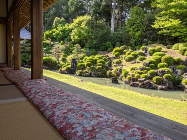 本堂の縁側には座布団が敷かれており、腰かけてゆったりと鑑賞できるように配慮がなされています。