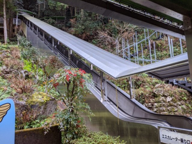 最後は石段がそびえるのですが、隣にエスカレーターがある親切設計。