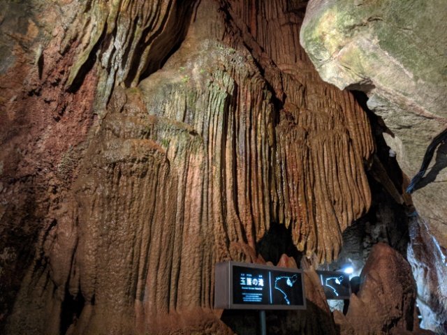 龍河洞最大の鍾乳石で、その大きさは11mにもなります。15万年という気が遠くなるような長い歳月をかけて作り上げられたものだそう。ちなみに、ブラジルにある世界最長の鍾乳石は12m。この天降石は世界レベルの大きさと言っても過言ではないのではないでしょうか。