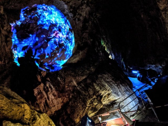 煌びやかでカラフルな映像作品が、鍾乳洞探索のクライマックスを飾ります。