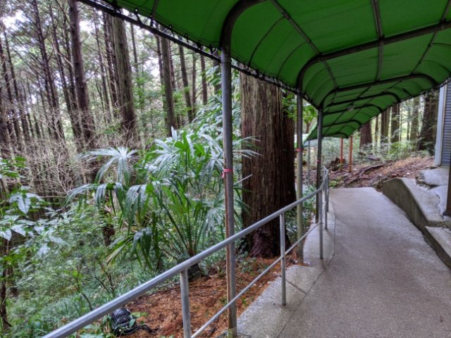 入口まで戻る道は、少々長い下り道。ただし、舗装されているし、屋根もあるのですいすい進めます。