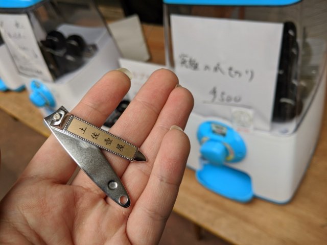 帰り道、商店街にて「究極のつめきり」(500円)というガチャを見つけてうっかりやってしまいました。出てきたのは土佐打ち刃物の老舗・土佐壺屋の爪切り。