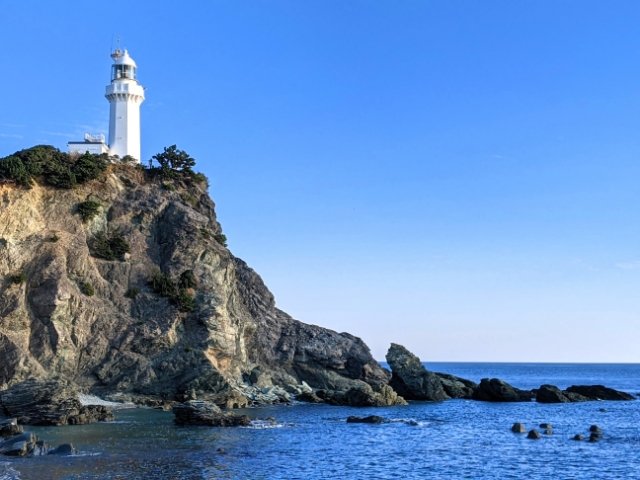 さらに近くまで車道は延びていないため、灯台の駐車場から距離1,500m、徒歩約25分の道のりを歩く必要があります。道中にはトイレしかありませんので、特に夏場は日よけや飲み物の用意をお忘れなく!