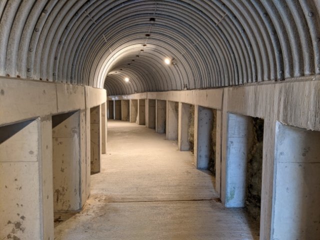 内部もかなりキレイ。コンクリートで補強されており。照明もばっちりです。数ある戦争遺跡の中でも、かなりカジュアルに訪問できる場所ではないでしょうか。