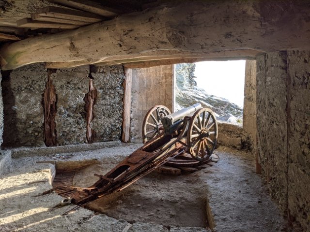 奥へ進むと、鎮座する大砲の姿。レプリカですが砲台のイメージがしやすく、雰囲気も抜群です!ただし、大砲の手前には柵が設置されており、近づくことはできませんのでご注意ください。