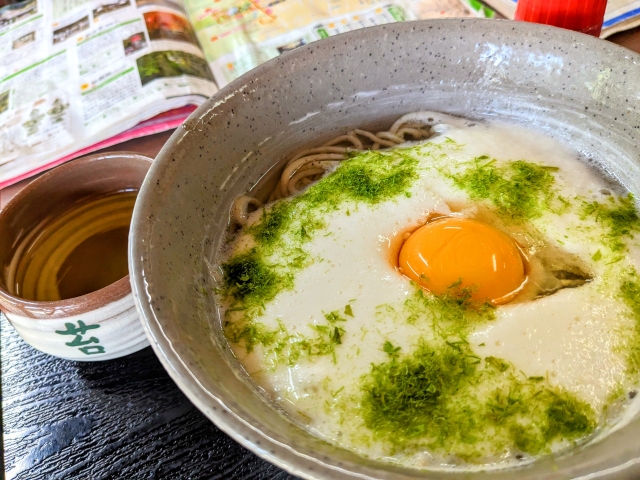 ここの名物は門前とろろそば。とろろの上に、苔をイメージした青のりがのったメニュー。お蕎麦ももちろんですが、お出汁がとっても美味しくて全部飲み干してしまいました。