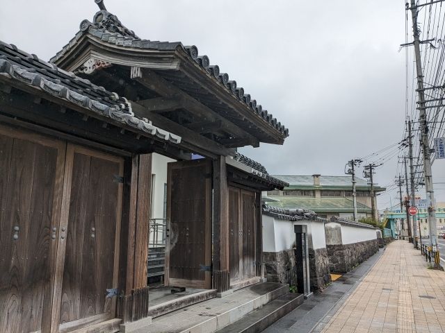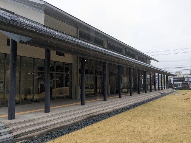 屋外にも多数の展示物があります。国道に面している部分に建つのは三府御門。1802年にこの地に設置された藩役所「三府役所」の門であったそう。