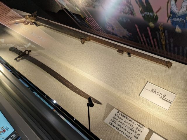 こちらの銃と銃剣は、西南戦争の遺品。政府軍は連射性の高い後装式を使用。この銃は前装式であるため、西郷軍のものと考えられています。
