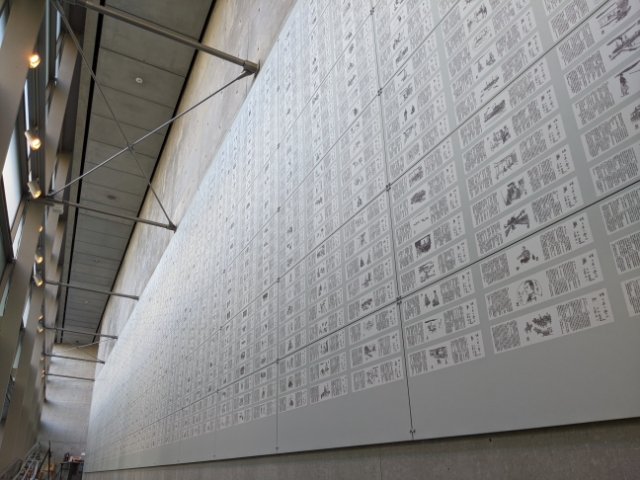 産経新聞に連載されていた「坂の上の雲」がびっしりと貼られた新聞連載の壁。1968年〜1972年にかけ、全1,296回にも渡り掲載されていたそう。さすがに小さいため文字はあまり読めませんが、全てに掲載されているイラストを眺めていくのは楽しめます。