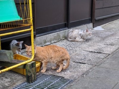 天草の集落はネコが多いのですが、この崎津集落も例にもれずネコまみれ。地元の方の話によると、これでもかなり数が減ったそう。その代わり、近年ではタヌキが増えてきているらしい。