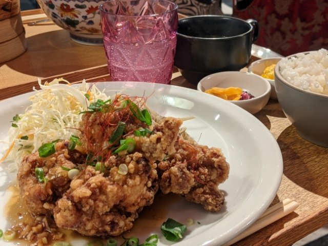 こちらは「油淋鶏定食」。サクサクの唐揚げは甘口でとっても美味しいです!甘酸っぱいタレも絶妙なお味。