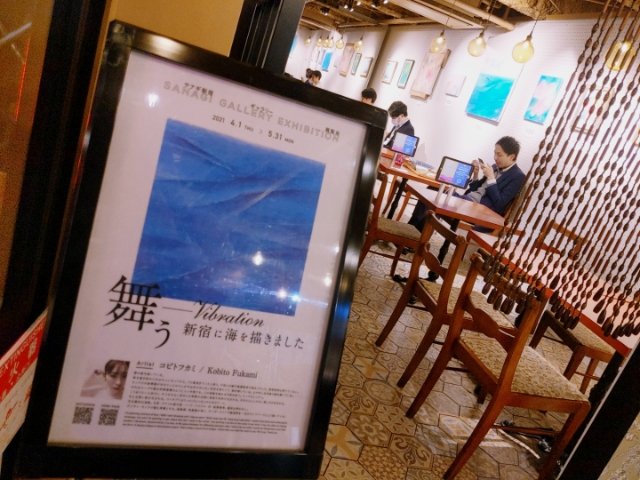 店内の一角は、絵が展示されるギャラリー席「サナギインキュベーション/ GALLERY」。ここでは、様々なアーティストの展覧会を開催しています。