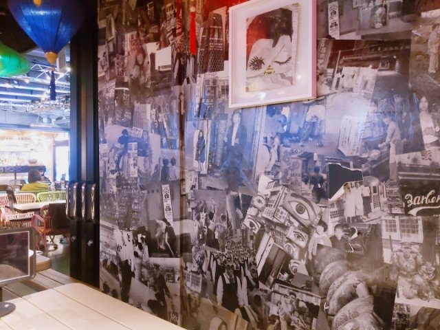 改めて店内を見渡してみると、随所にみられるポップアートや、昭和の日本の写真がコラージュされた壁紙などアーティスティックな要素がたっぷり。