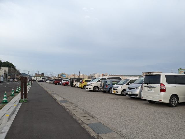 GWだったためか、早朝にも関わらず空きは数台。おそらく、佐柳島に宿泊している方が置いているのではないでしょうか。港に近いスペースから埋まっていくので、桟橋まで少し歩く可能性があります。繁忙期に訪れる方はなるべく早めの到着がおすすめです。
